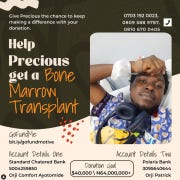Precious Orji has been recently diagnosed with Aplastic Anemia and would be needing an urgent bone marrow transplant.